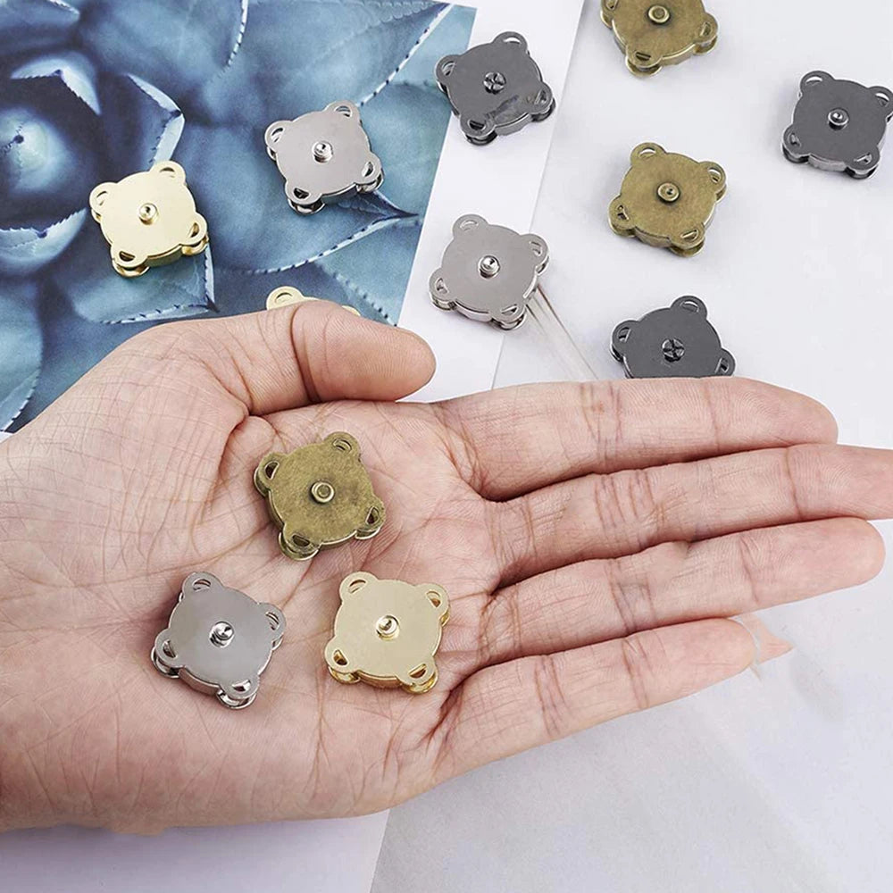 10/8 Sets Magnetic Snap Button Metal Plum Blossom Sew on Button Clasps Fasteners for Purses Handbag Clothes DIY Accessories