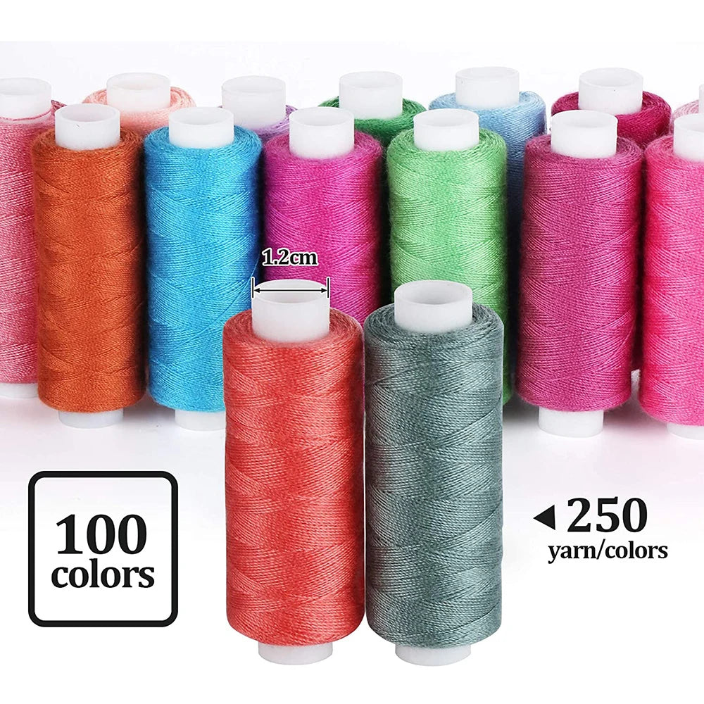 100 Colors Sewing Thread Set 250 Yards Each Spool Multicolor Polyester Threads for Embroidery Stitching Knitting Sewing Supplies