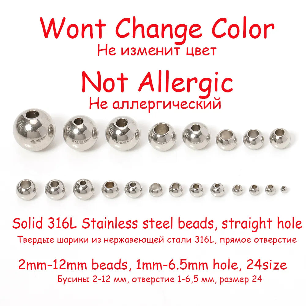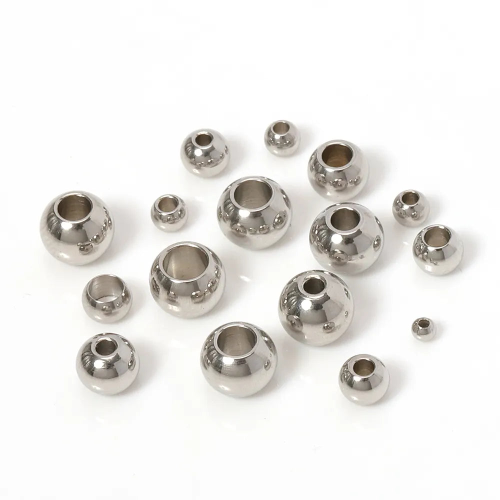 100pcs 2 mm-12 mm 316L Stainless Steel Beads European Ball Metal Big Hole Spacer Beads for Jewelry Making Diy Bracelet Necklace