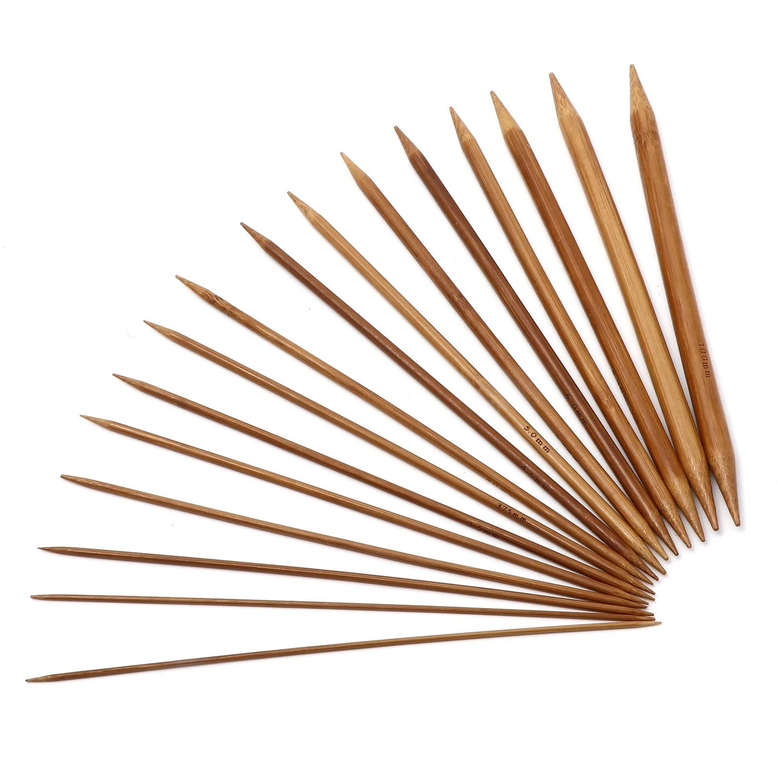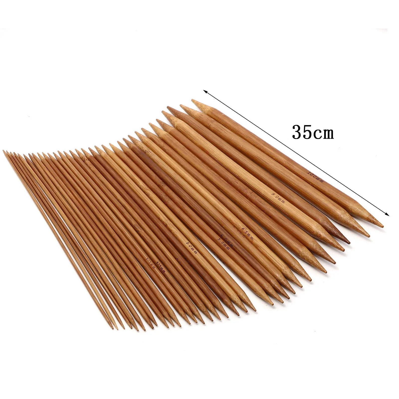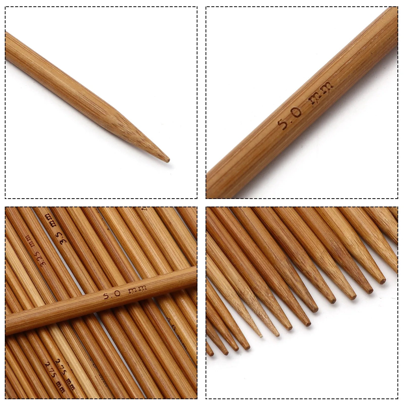 5PCs 2.0mm-10.0mm Brown Bamboo Double Pointed Knitting Needles Straight Stick for Sweater Scarves Knitting Tools 25-35cm long