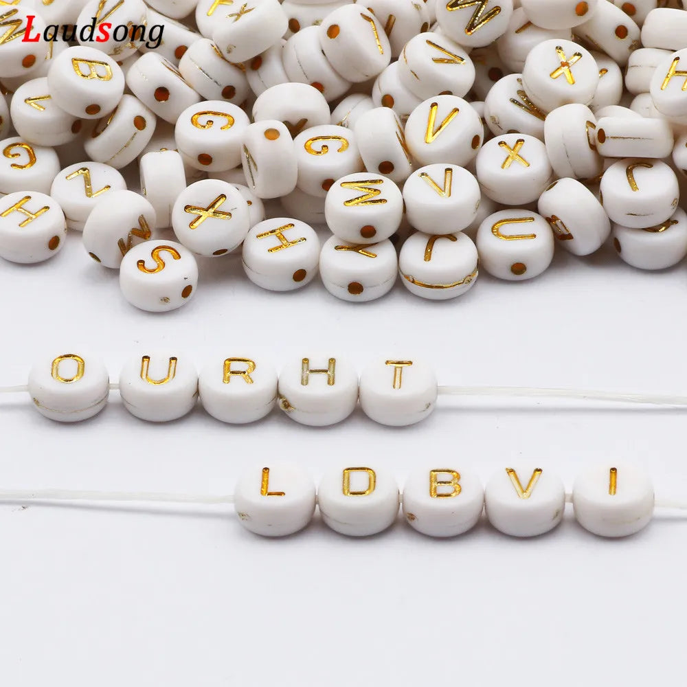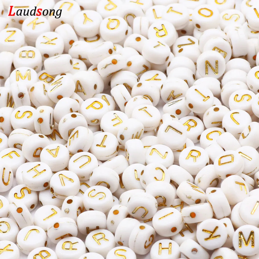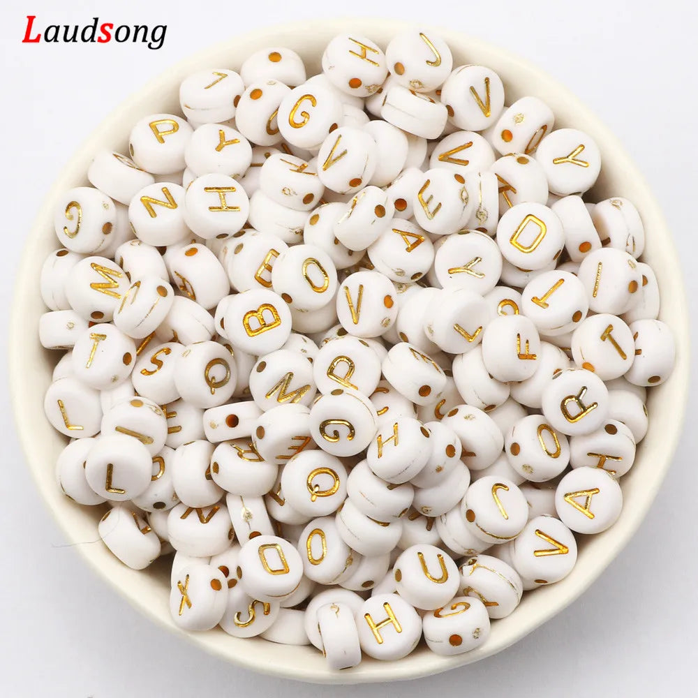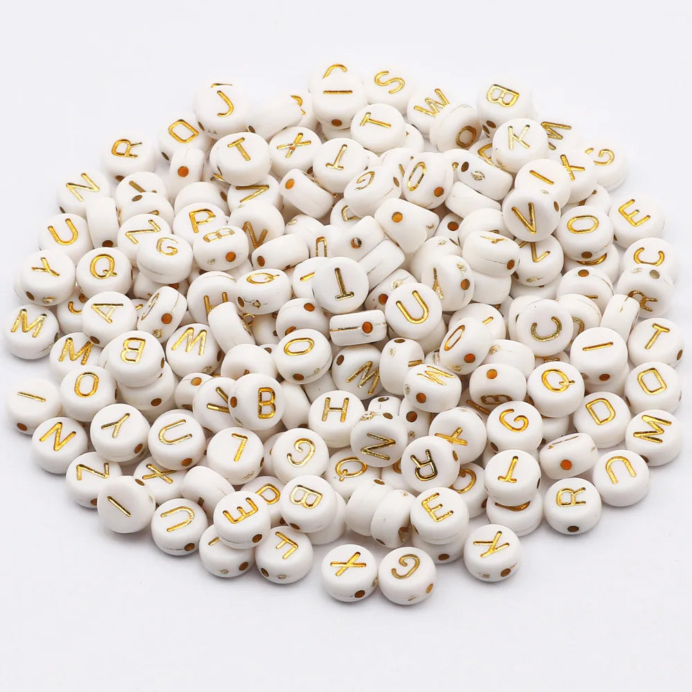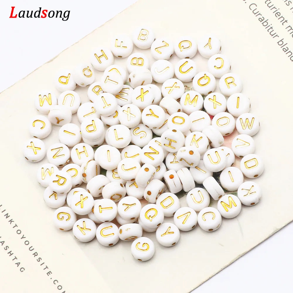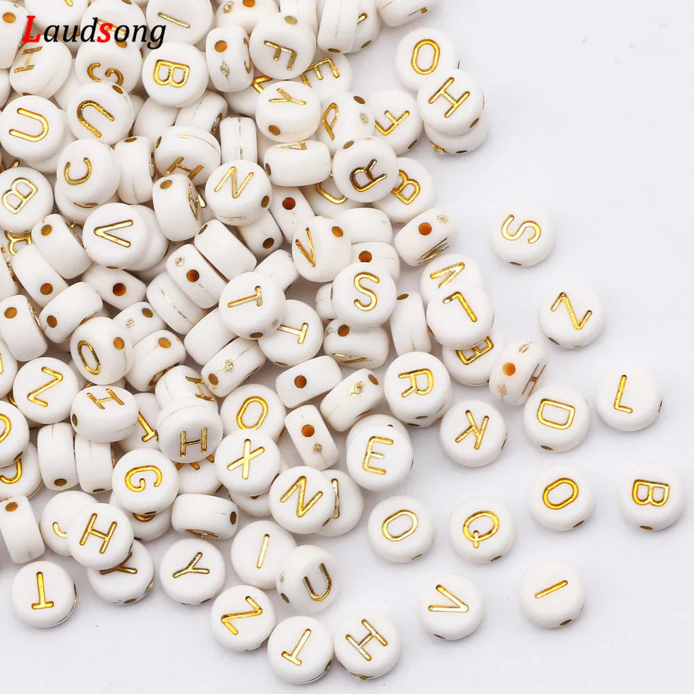 7mm White Gold Color Mix Letter Acrylic Beads Round Flat Alphabet Loose Beads For Jewelry Making Handmade Diy Bracelet Necklace