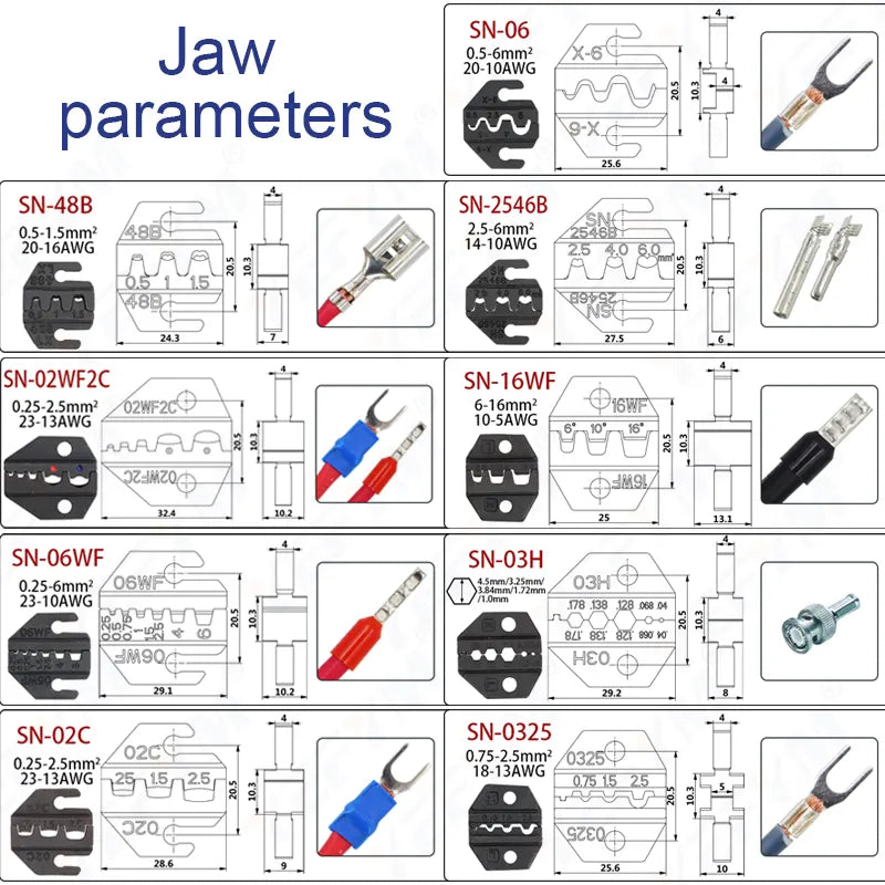 Crimping Pliers SN-48BS(=SN-48B+SN-28B) More Jaw for 2.8 4.8 6.3 VH3.96/Tube/Insulation Terminals Electrical Clamp Min Tools Set