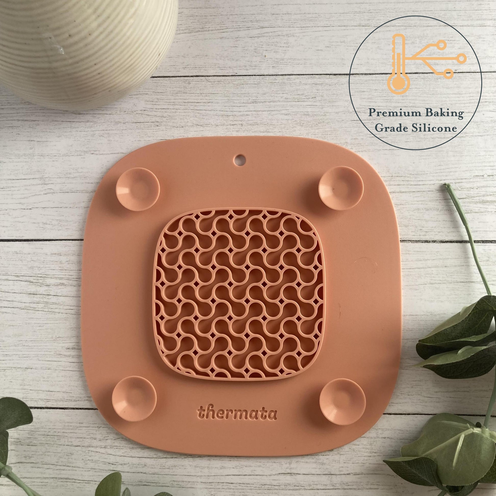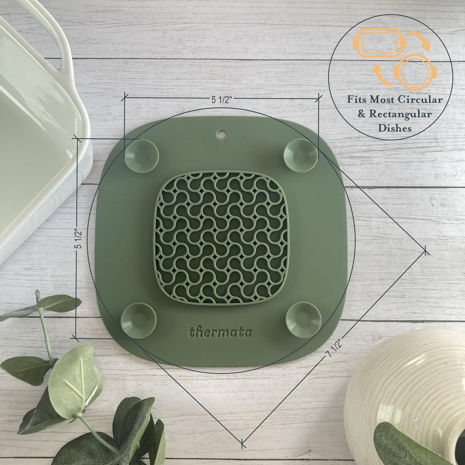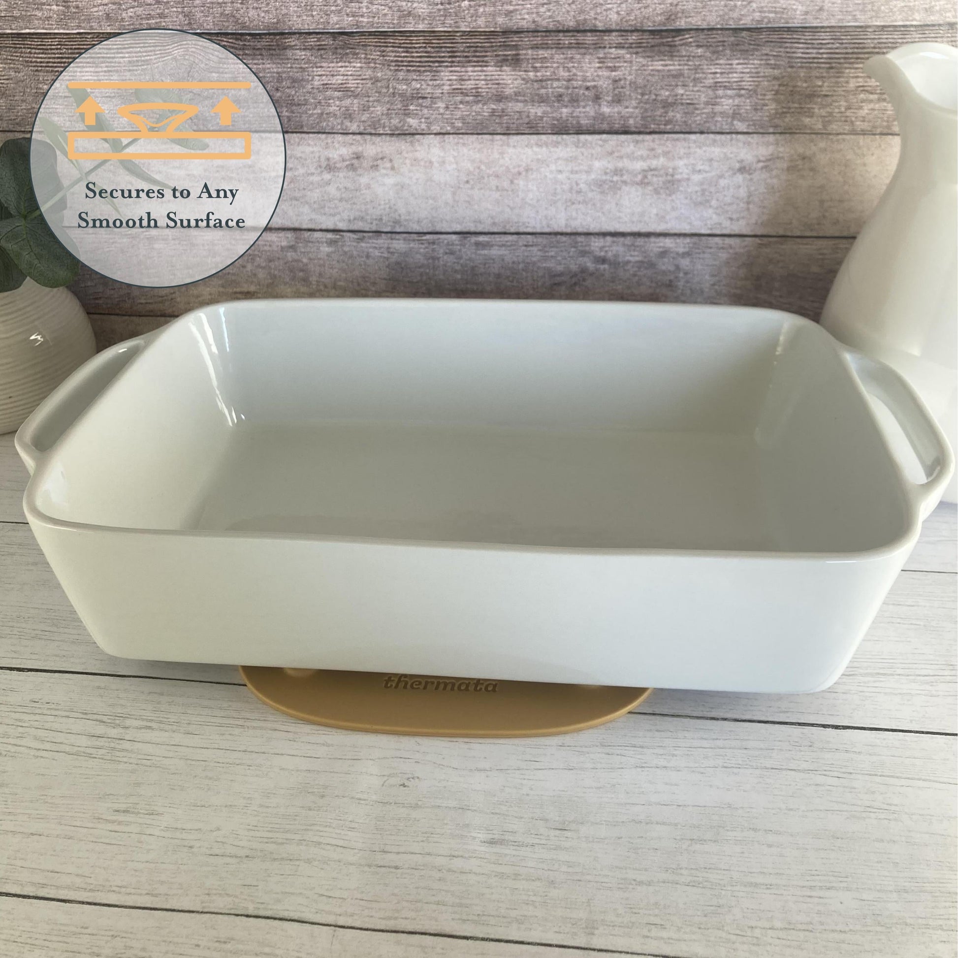 This large suction cup hot pad is perfect for any casserole dish and comes in six beautiful colors. The suction cups adhere to any smooth surface for added convenience when passing dishes around the table or moving them around the kitchen. Comes in a pack of 2!