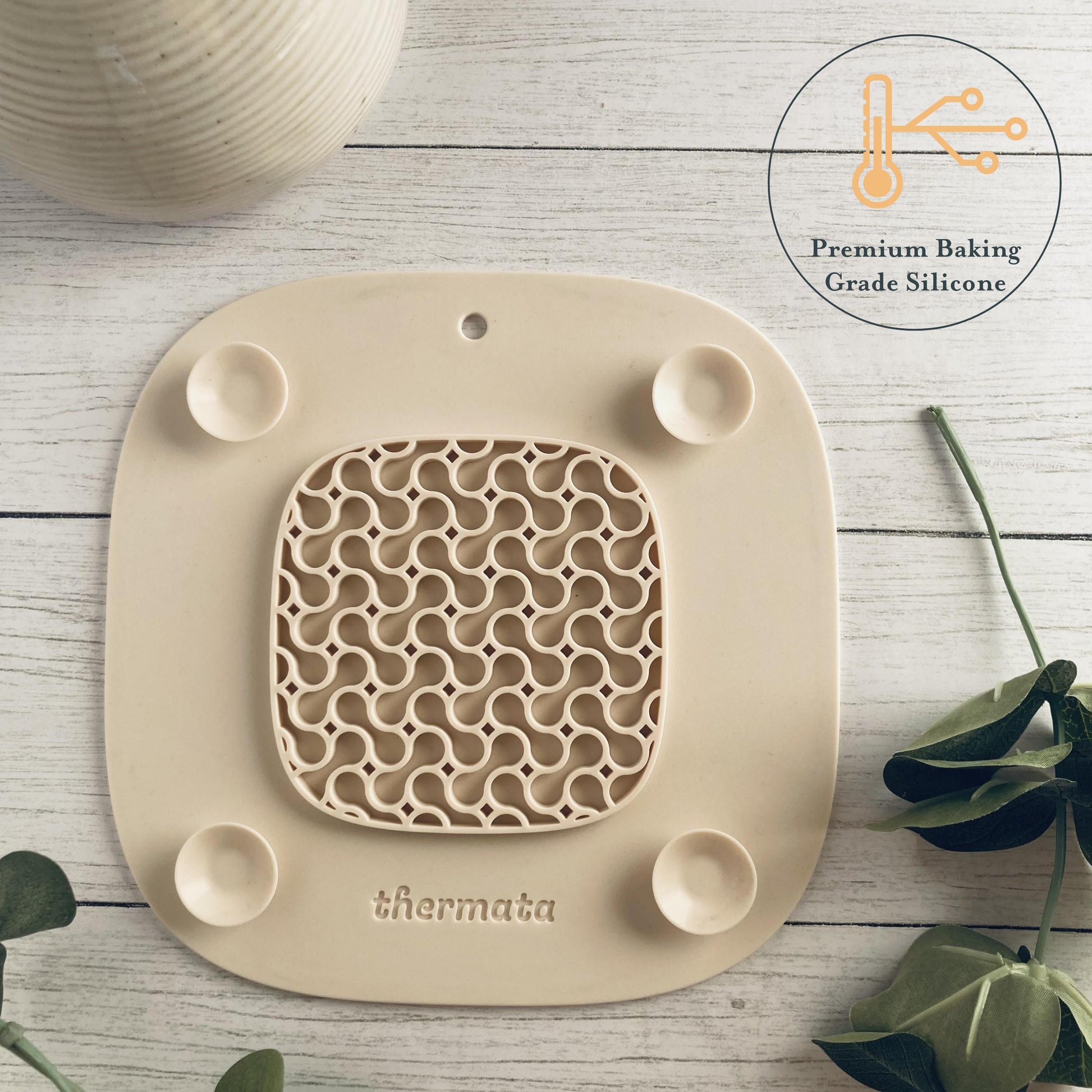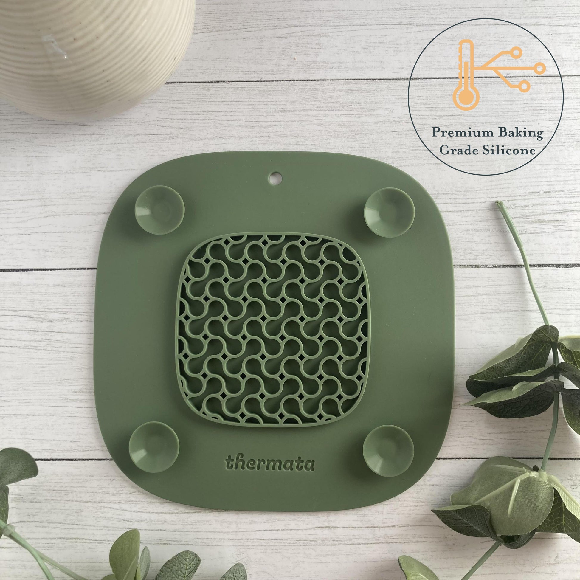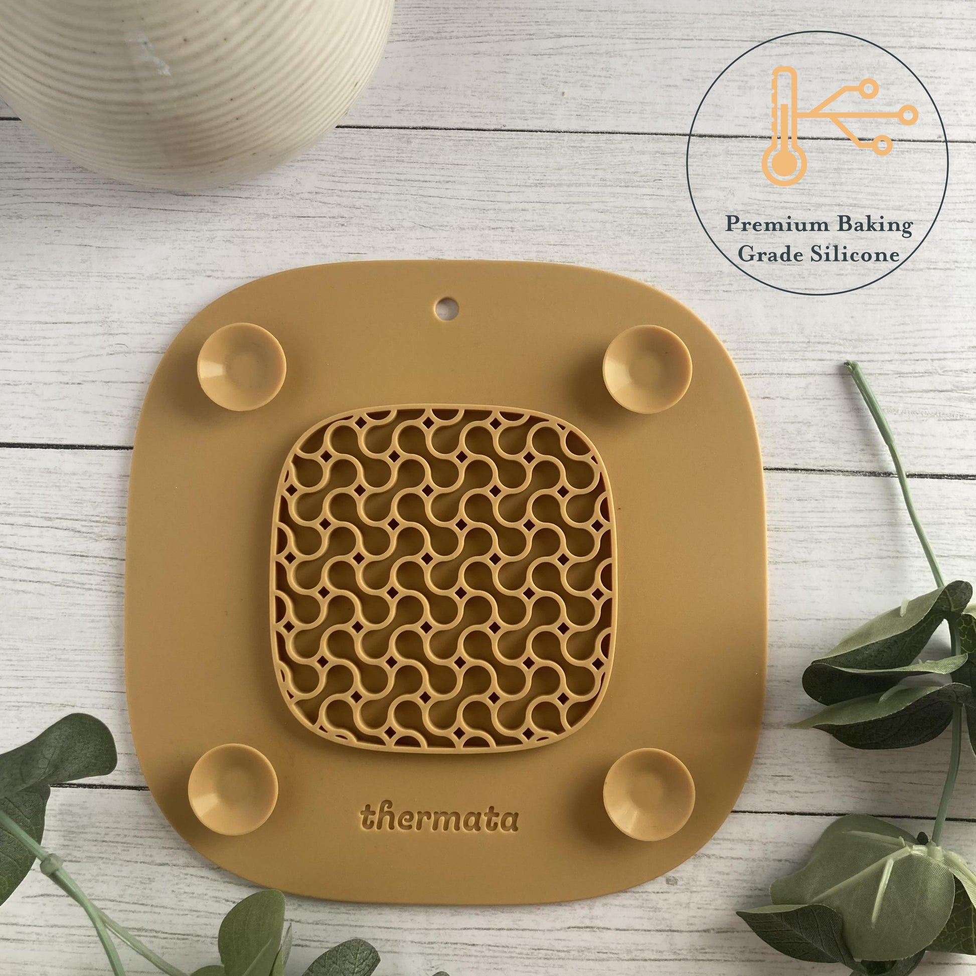 This large suction cup hot pad is perfect for any casserole dish and comes in six beautiful colors. The suction cups adhere to any smooth surface for added convenience when passing dishes around the table or moving them around the kitchen. Comes in a pack of 2!
