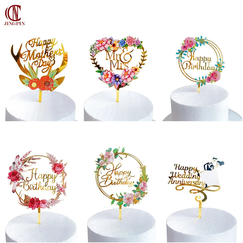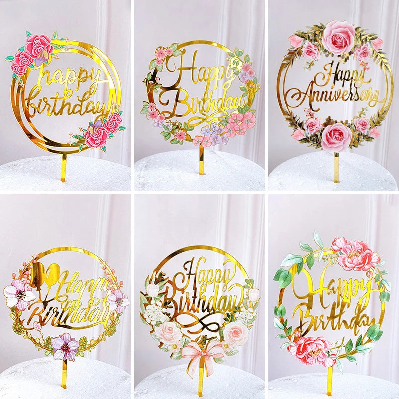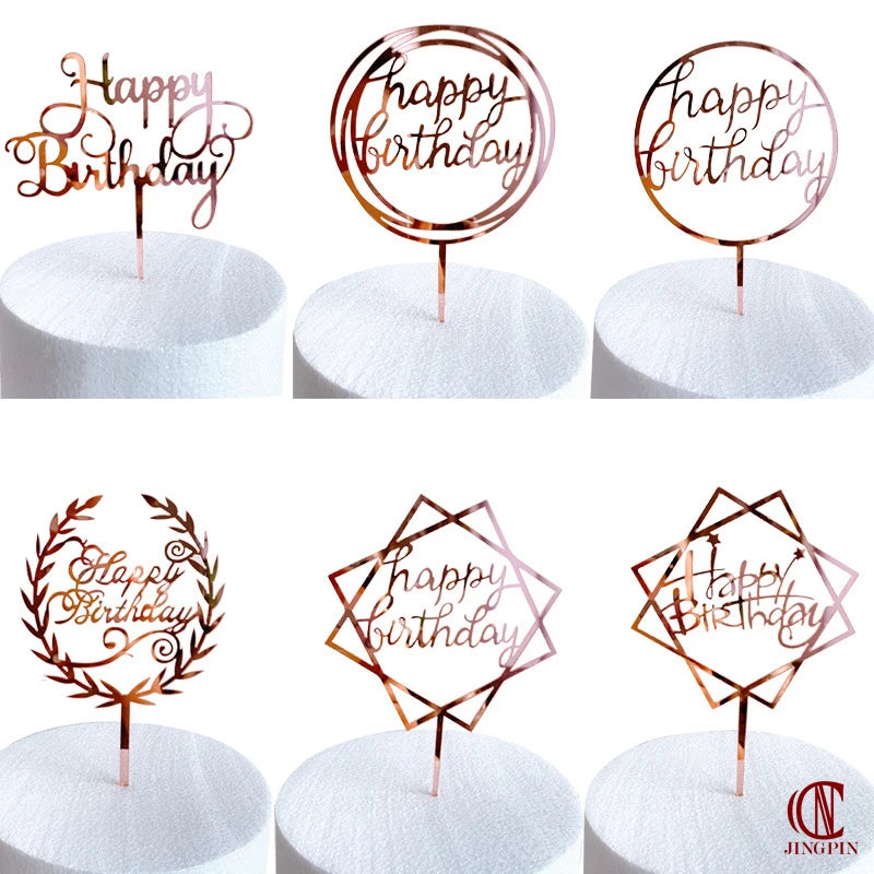 Rose Gold Birthday Party Cake Decorating Tools Happy Birthday Girl Boy Acrylic Cake Topper Baby Shower Dessert Accessories Tools