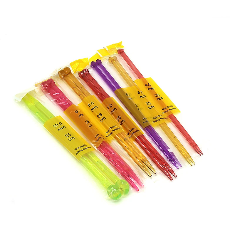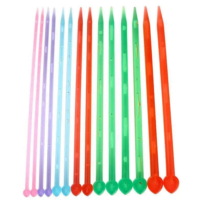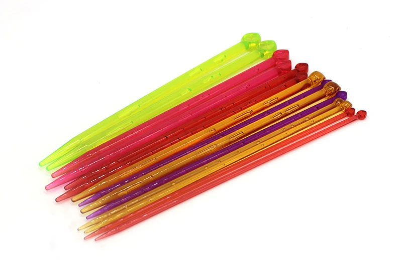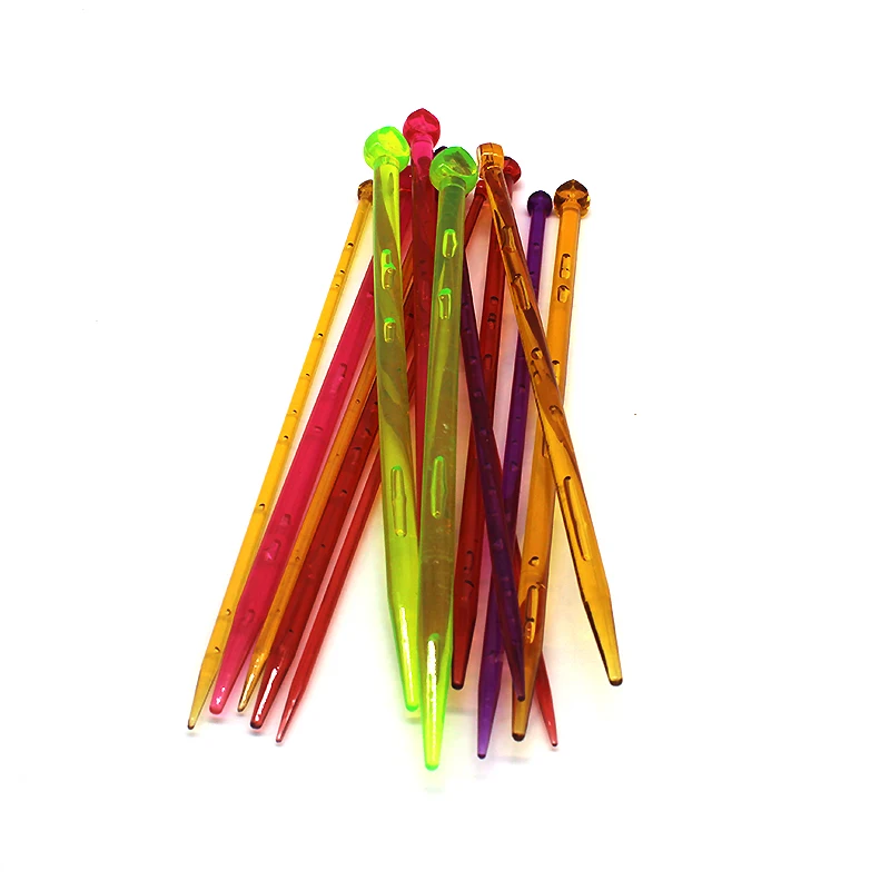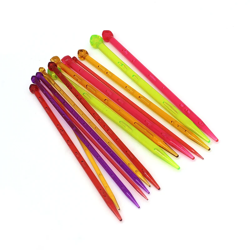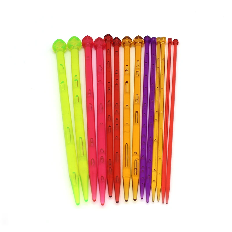 Single Point Straight Knitting Needle, Plastic Knitted Needlework, Acrylic Crystal Needles for Sweater, 14Pcs